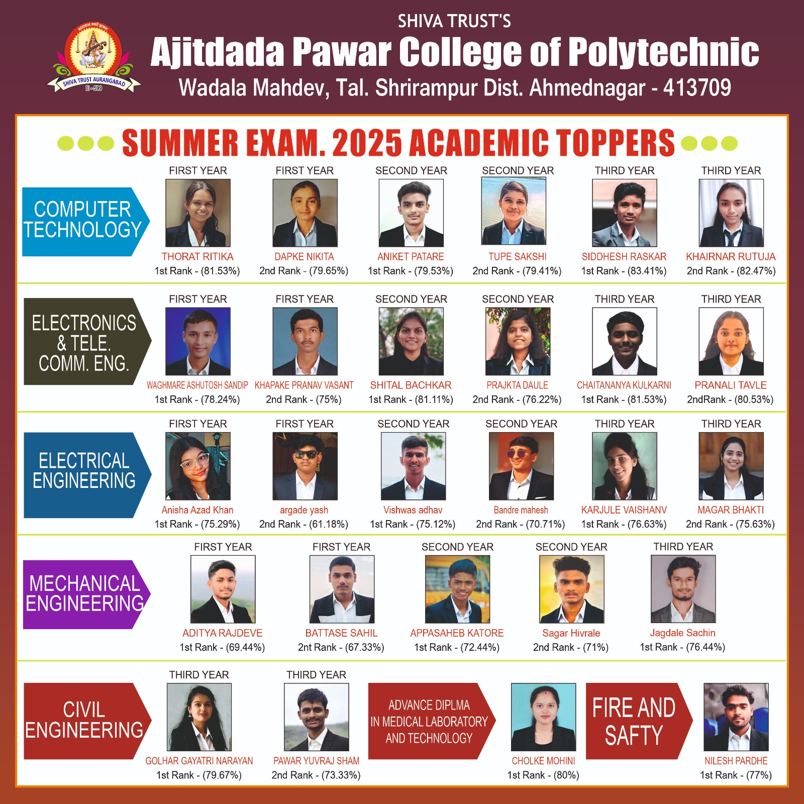Wadala Mahadev, Shrirampur Newasa Road, Shrirampur Approved by AICTE, New Delhi and DTE Mumbai, Affiliated to MSBTE Mumbai.